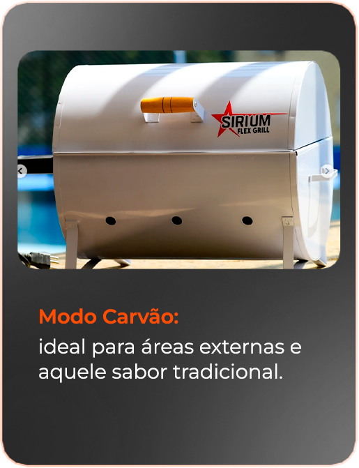A nova Sirium Flex Grill é a primeira churrasqueira do Brasil que une o sabor do carvão com a praticidade da eletricidade, sem fumaça, sem sujeira, e com todo o sabor do churrasco tradicional.
